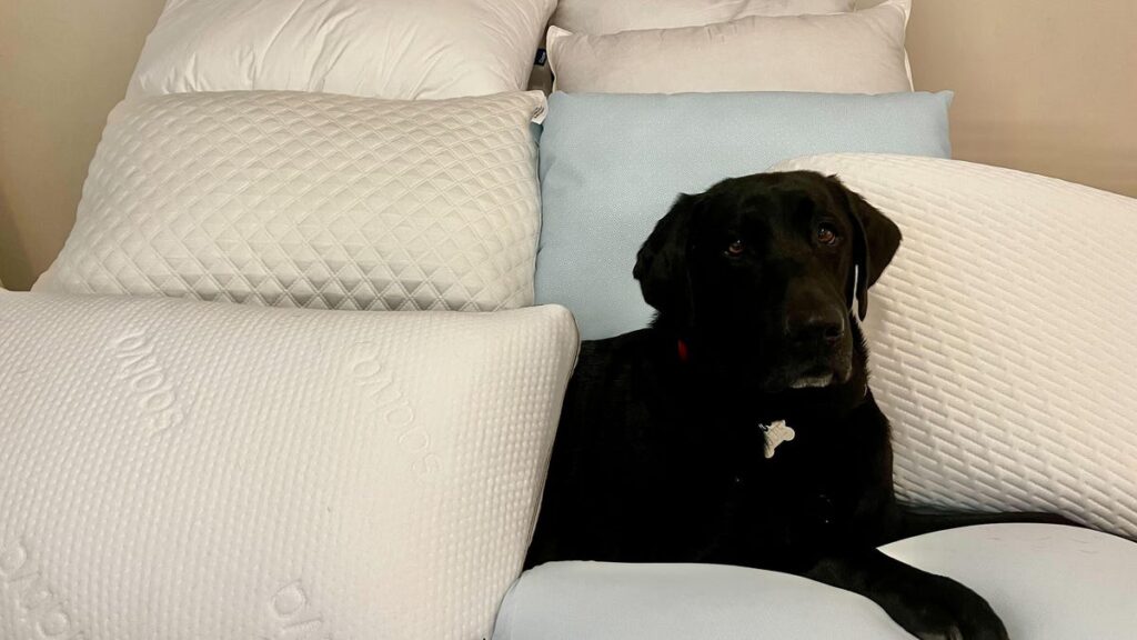 I’m a combination sleeper, meaning I often switch to sleeping on my side or my stomach. Although I’ve tested more than 25 pillows (and another 10 for this article), I thought it would be best to consult a more consistent back sleeper for a second opinion. My boyfriend, who’s a strict back sleeper, helped me test and pick these pillows. We both spent a few nights sleeping and lounging on them (my dog included). The pillows that made this list are truly the best of the best for back sleepers.