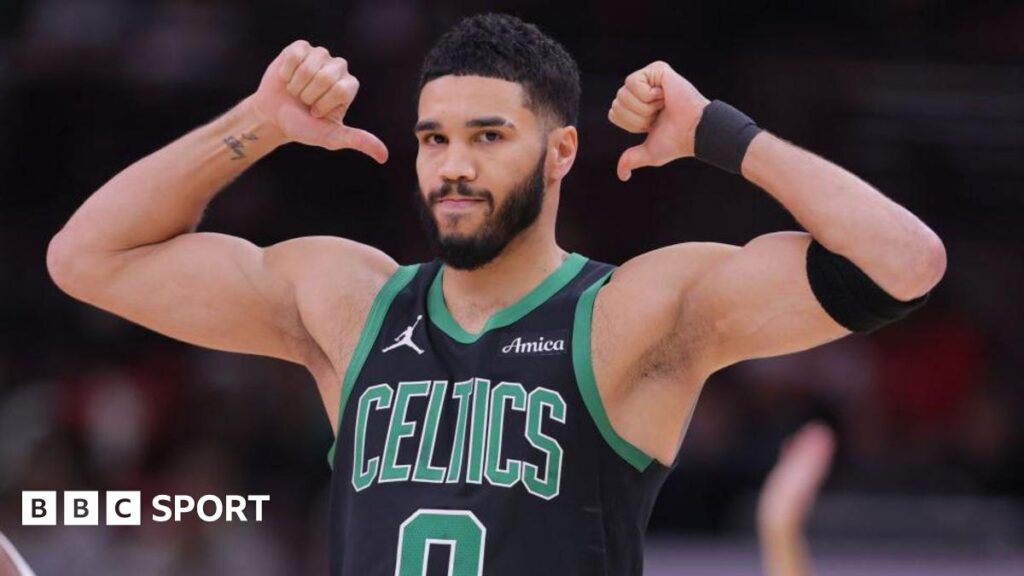 Jayson Tatum matched a record set by Boston Celtics legend Larry Bird as the Celtics earned a comfortable 123-98 win against Chicago Bulls on Saturday.