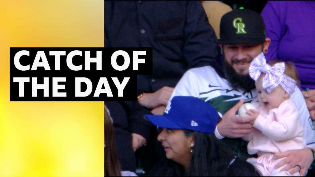 A Colorado Rockies fan stole the show at the Coors Field stadium in Denver, catching a ball in the crowd while holding his baby in the other hand.