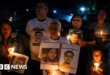 CCTV footage shows a boy dangling from the rear doors of a moving bus in …