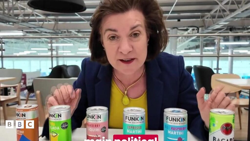 Gan ddefnyddio coctels tun fel propiau, ffilmiodd y prif weinidog fideo cyfryngau cymdeithasol i esbonio’r perygl y mae’n ei wynebu yn yr etholiad ar 7 Mai.
