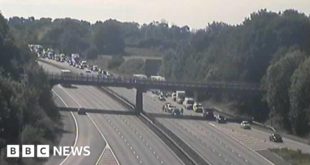 Sonia Kataria, East Midlands National Highways The closure has caused significant disruption A driver has been taken to hospital after a two-car crash on the M1, which led to the motorway being shut in both directions. Emergency services were called to the northbound carriageway between junctions 20 and 21 in …