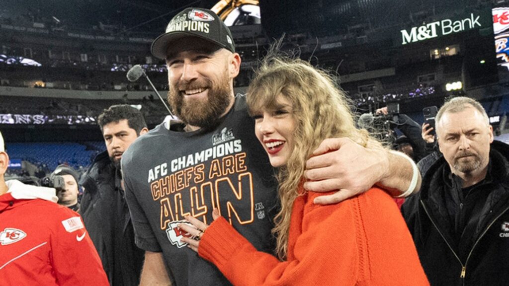 Kelce and Swift, also 34, have been in a relationship for almost a year and the Grammy-winning musician has thrilled fans by appearing at her boyfriend’s football games, including going on the pitch at the Super Bowl in February.