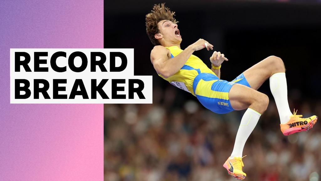 Watch as Armand Duplantis breaks his own world record in the men’s pole vault final and wins gold at Paris 2024 Olympics.